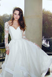 Look stunning in this Glamorous V Neck Long Sleeves Lace Organza Wedding Dresses WD125. Crafted with a luxurious organza fabric, this dress offers a romantic look for an outdoor, countryside wedding. Featuring long, beautiful sleeves and lace detail, this piece is the perfect choice for a wedding.