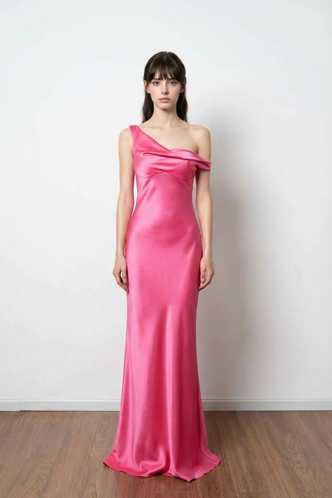 Elevate your style with this simple prom dress! Featuring a chic one-shoulder neckline and a sleek satin sheath fit, this gown offers high-end glamour at an affordable price. Why search for a prom dress nearby when you can get this cheap prom dress delivered? Order your stunning look today!